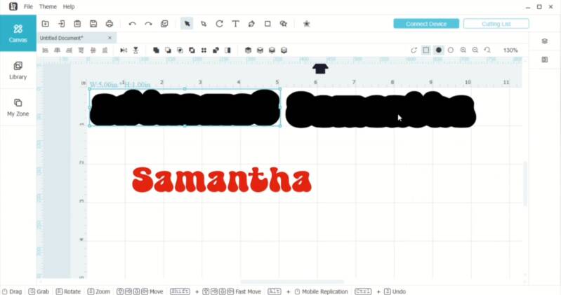 Next, select the text tool, which is represented by a T in the upper tool bar. Click on the canvas to place the text box. Type in whatever name or word you choose. It can be a first name, last name, team name, or favorite word, such as Love, Blessed, or Faith.