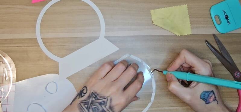 Press only the vinyl area so the transfer tape doesn’t tear, or pull up, the 176 GSM cardstock.