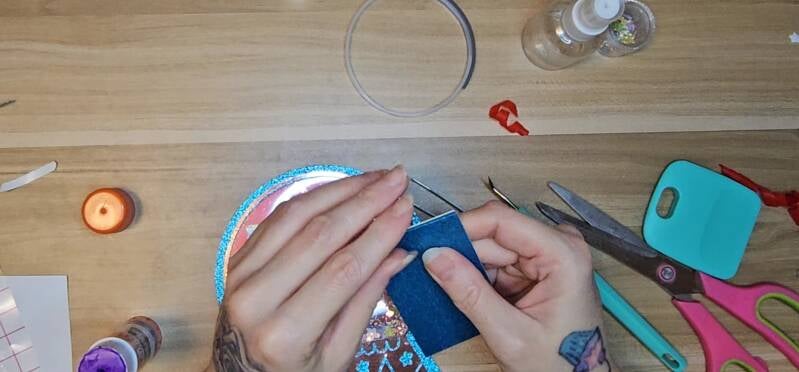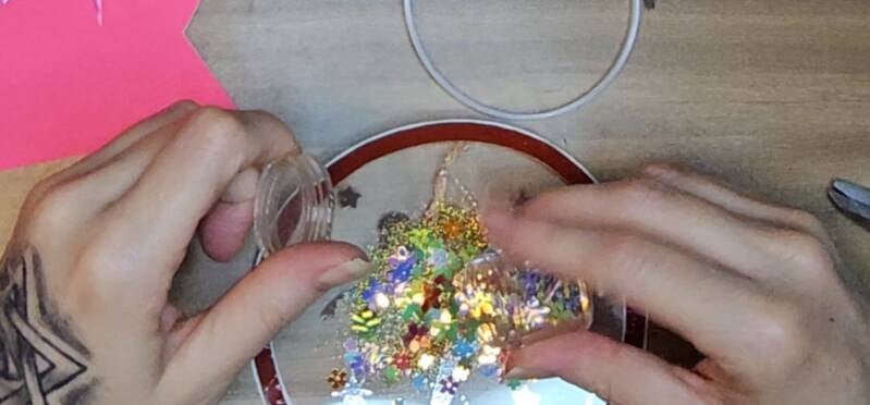 Add your glitter and sequins to the center.