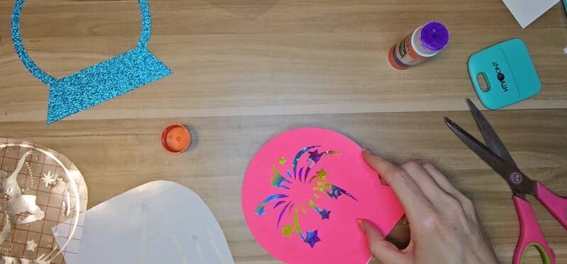 Lightly place transfer tape over the fireworks vinyl — just enough to lift the vinyl, not the cardstock.